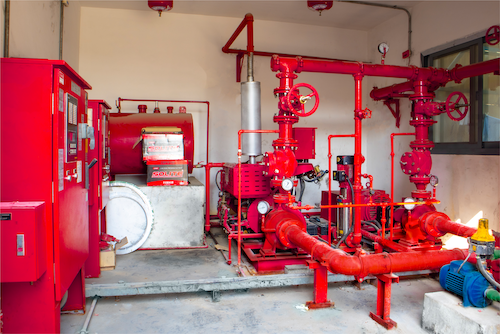 A large storage of water in tanks, either underground or on top of the building called fire storage tanks – A specialized pumping system – A large network of pipes ending in either hydrants or sprinklers (nearly all buildings require both of these systems)